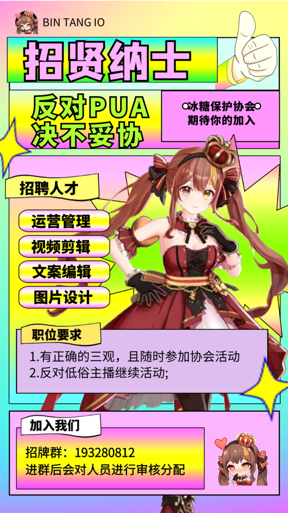他们开始经营情侣人设,但是,并没有官宣,冰糖负责了大部分的运营视频制作,因为张先生是日本人,所以需要翻译,是冰糖负责;因为vtuber是需要模型也就是皮套,是冰糖负责约模型师;因为需要台词,是冰糖写的稿子;因为需要活动,是冰糖亲自负责直播、商单、联动内容。